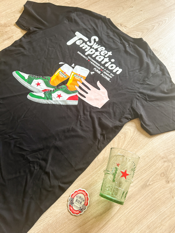 ハイネケンのロゴ入りTシャツ、ビールグラス、マグネットなど、