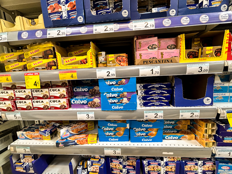 オリーブオイルやお菓子、イカ墨の缶詰など、