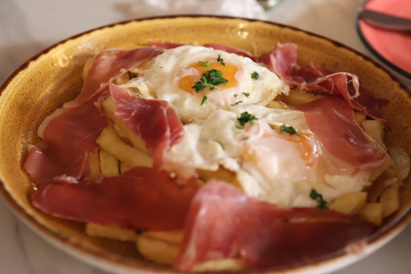 フレンチフライ+生ハム+半熟卵の定番料理。