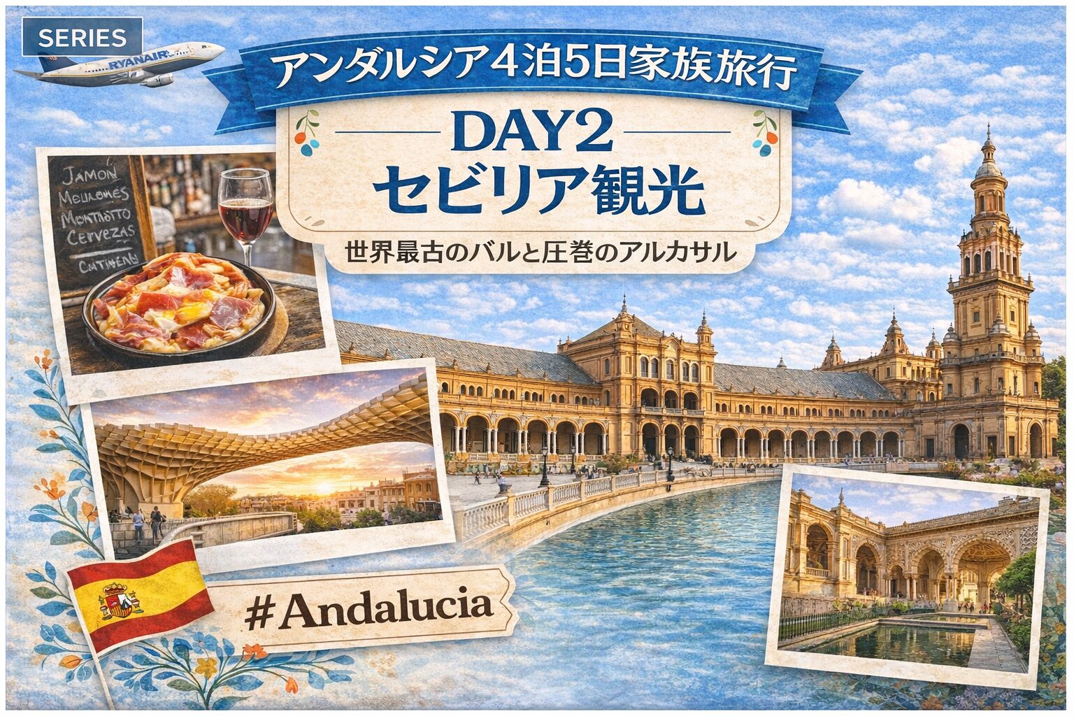 【アンダルシア4泊5日家族旅行】Day2 セビリア観光|世界最古のバルと圧巻のアルカサル