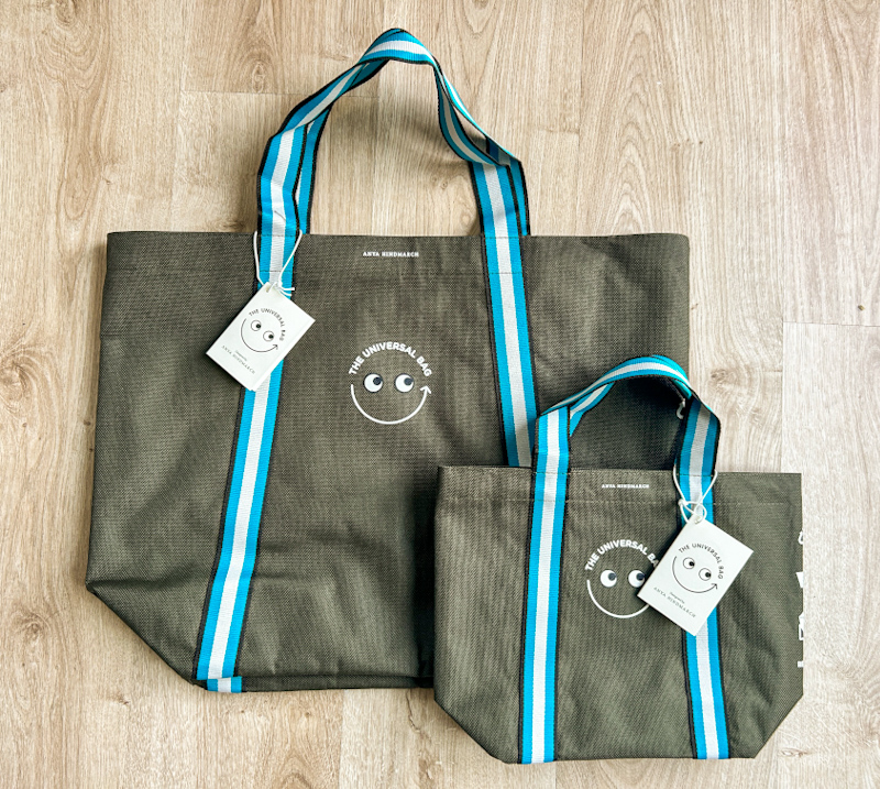 ロンドン在住者にはおなじみの、Anya Hindmarchのユニバーサルバッグ。